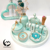 ست ۹تکه شامل :سینی،جاعودی،جاکبریتی،گلجا،استند هوم،مجسمه،گلدان،شات