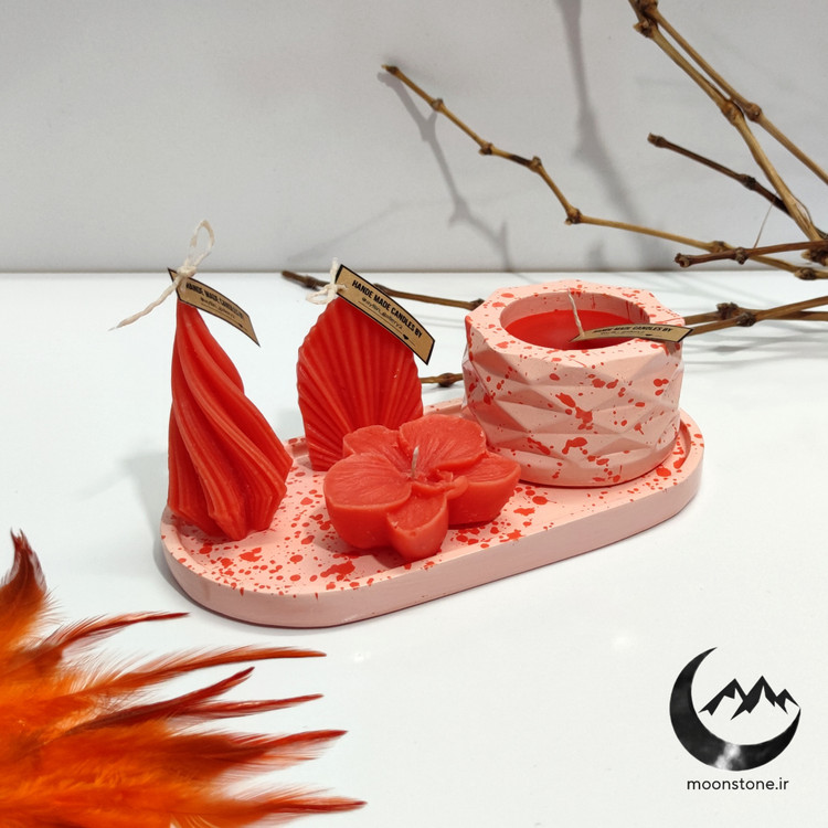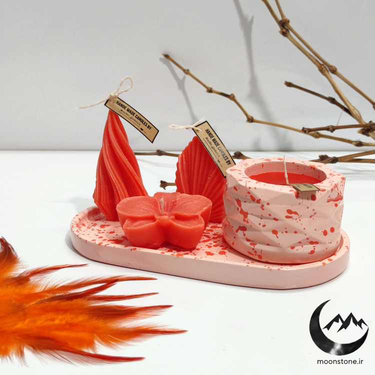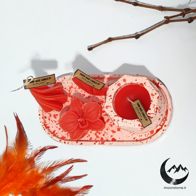 سینی بیضی و شات شمع از جنس سنگ مصنوعی و ضد آب هستند.