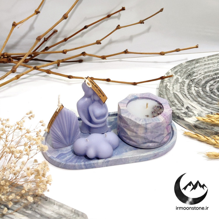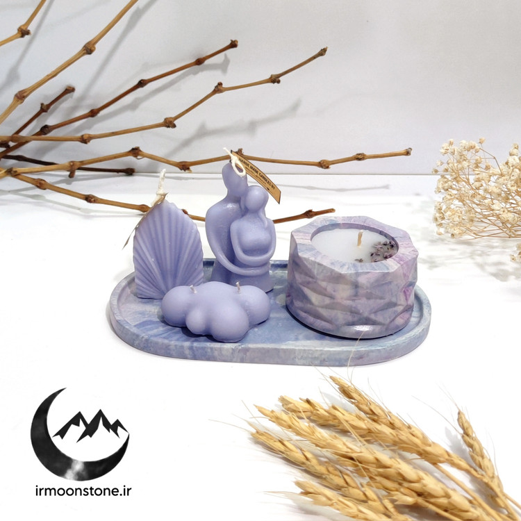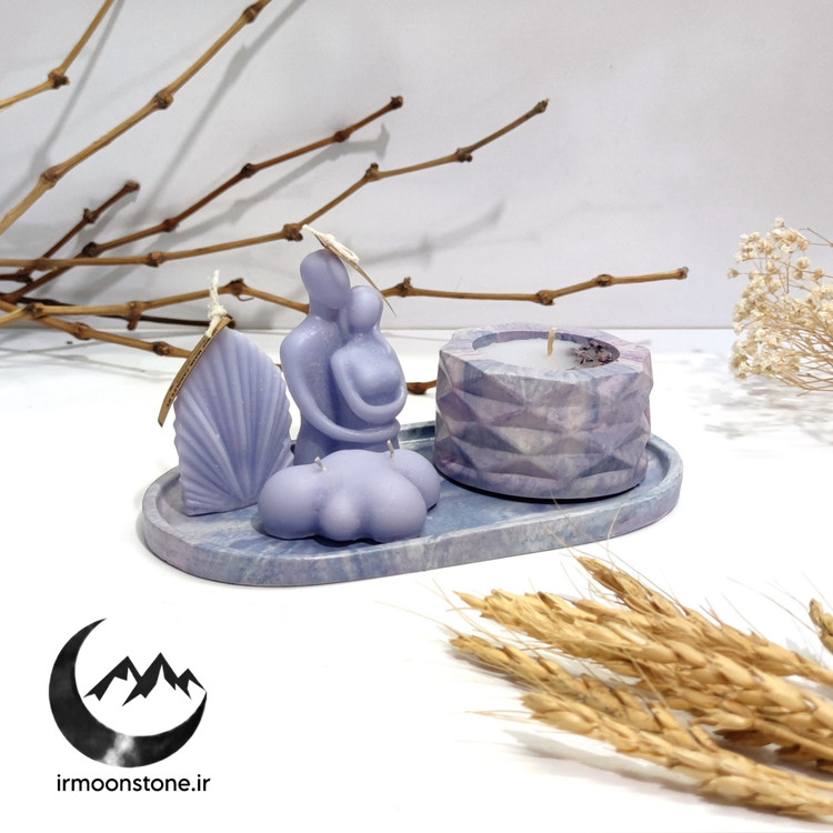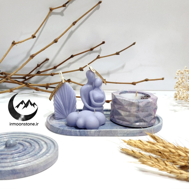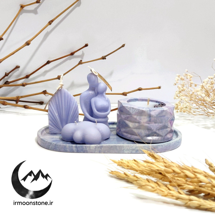 سینی بیضی و شات شمع از جنس سنگ مصنوعی و ضد آب هستند.