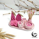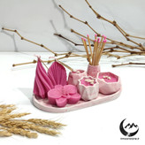 سینی بیضی و شات شمع از جنس سنگ مصنوعی و ضد آب هستند.